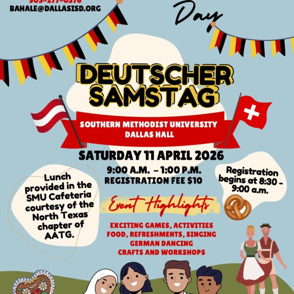 The North Texas Chapter of the American Association of Teachers of German serves as an exchange and support platform for educators of German at all levels of instruction. We connect all those interested in the teaching of German or in the advancement of the culture and language.